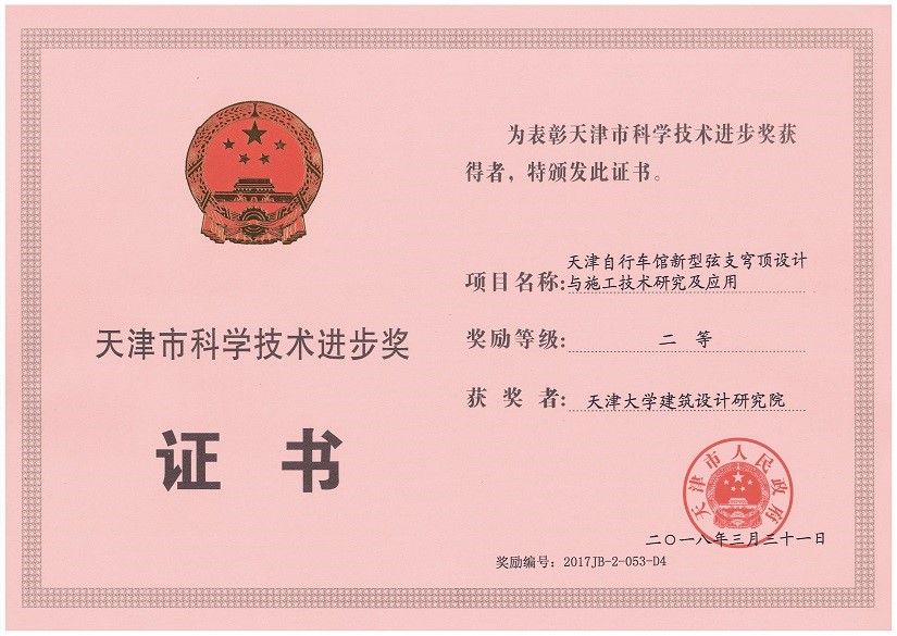 • 天津自行車館新型弦支穹頂設計與施工技術研究及應用(天津市科學技術進步獎二等獎)