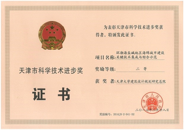 • 環渤海鹽堿地區海綿城市建設關鍵技術集成與綜合示范(天津市科學技術進步獎二等獎)