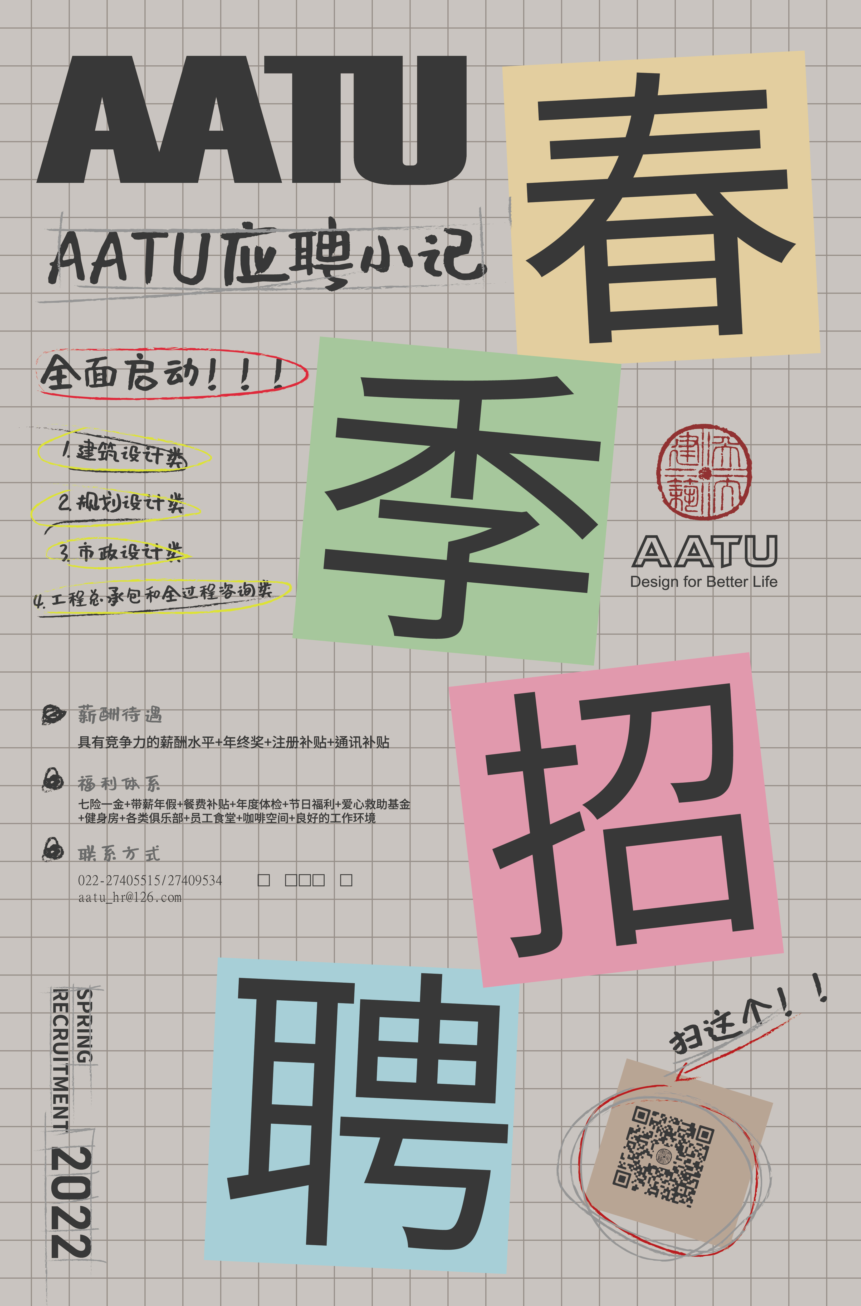 2  提交簡歷:將個人簡歷、作品集(建筑、規劃、風景園林、室內設計崗位必須提供)、本科及碩士成績單(應屆畢業生必須提供)等應聘資料打包以附件形式發送至郵箱 aatu_hr@126.com,郵件主題統一為“校招-專業-姓名-學校-學歷或社招-專業-姓名-學校-學歷”。