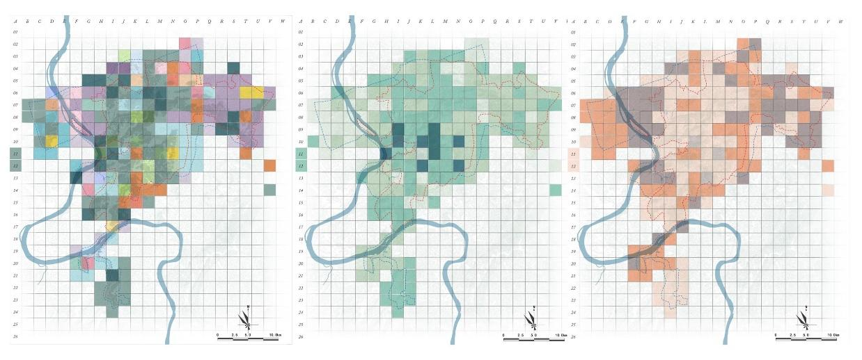 本體系基于全面的現場踏勘,結合衛星影像和無人機航拍信息,充分梳理和識別場地各類生境特征,構建了項目全域197個2X2km基礎網格單元。通過整合多層級要素,劃分景觀特征類別,確定各網格單元的場地敏感度和容納性(場地敏感度:在應對外部因素造成的變化時,場地的變化幅度和抵抗變化的能力;場地容納性:特定景觀類型或區域對變化的適應程度,判定變化對場地的環境特征是否將產生重大的、毀滅性的影響)。將生態保護紅線與場地敏感度評價、城市開發邊界與場地容納性評價分別對位,系統性優化“三線”范圍,統籌上位規劃中其他要素信息。用更科學合理的標準指導國土空間土地整治和項目的落位實施。