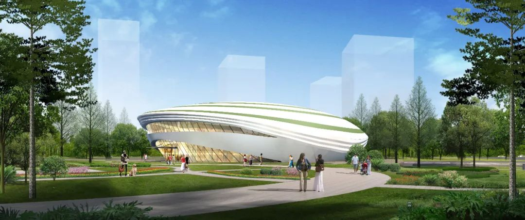 各場館建筑整體形象均以曲面形體為主,更加富有現代感、科技感。造型前衛靈動,各場館散落于園區之內,建筑外飾面采用鋁板幕墻、玻璃幕墻、外墻真石漆等進行裝飾,表現園區時尚前衛的現代感,為石家莊站前空間注入新的活力。