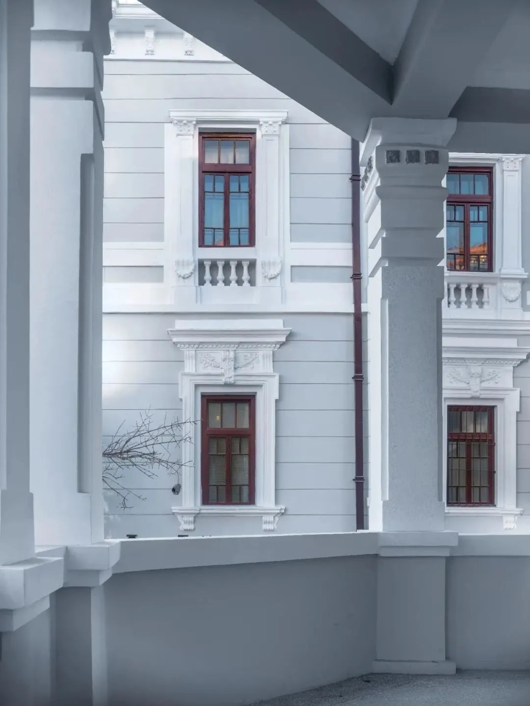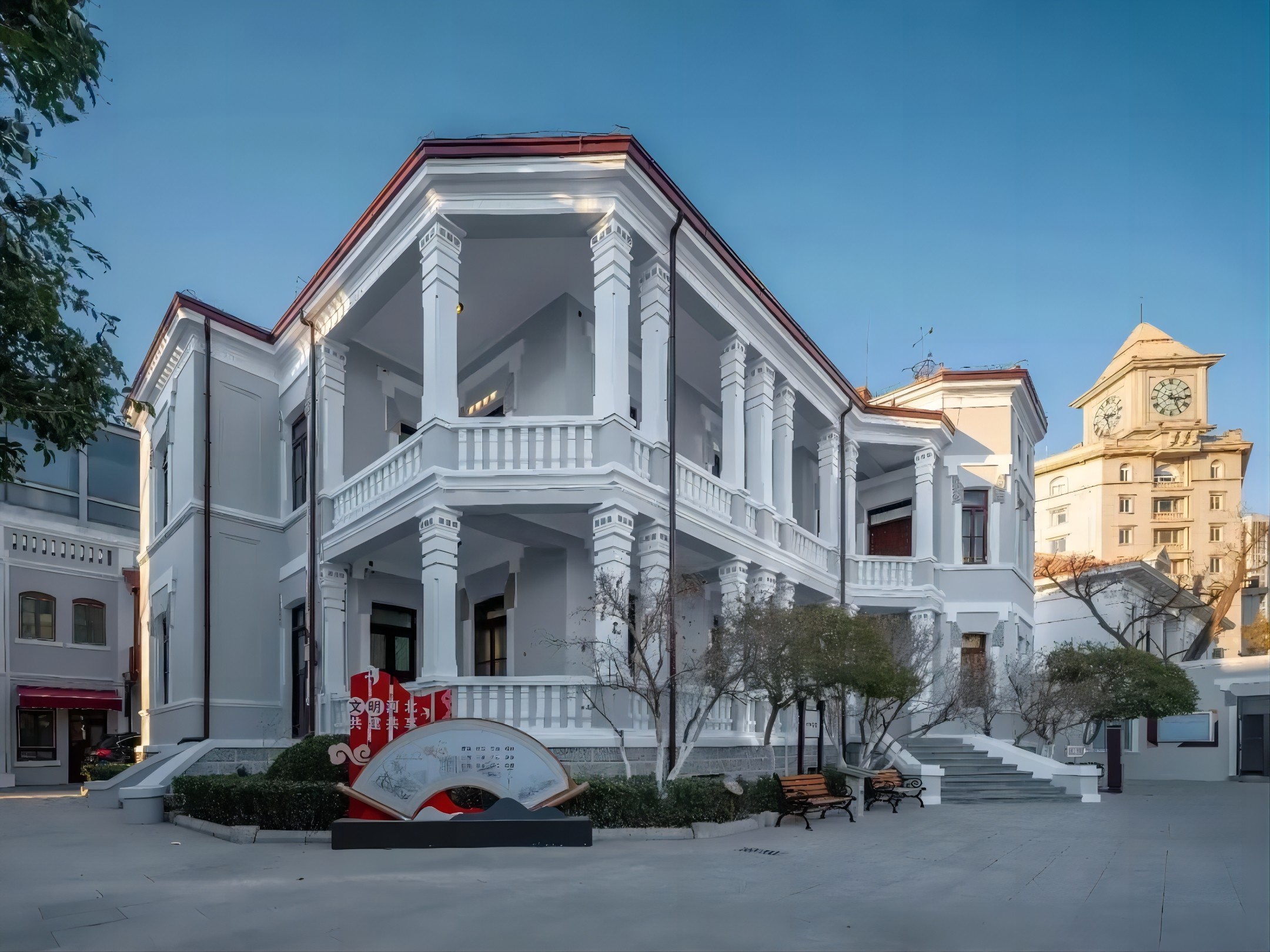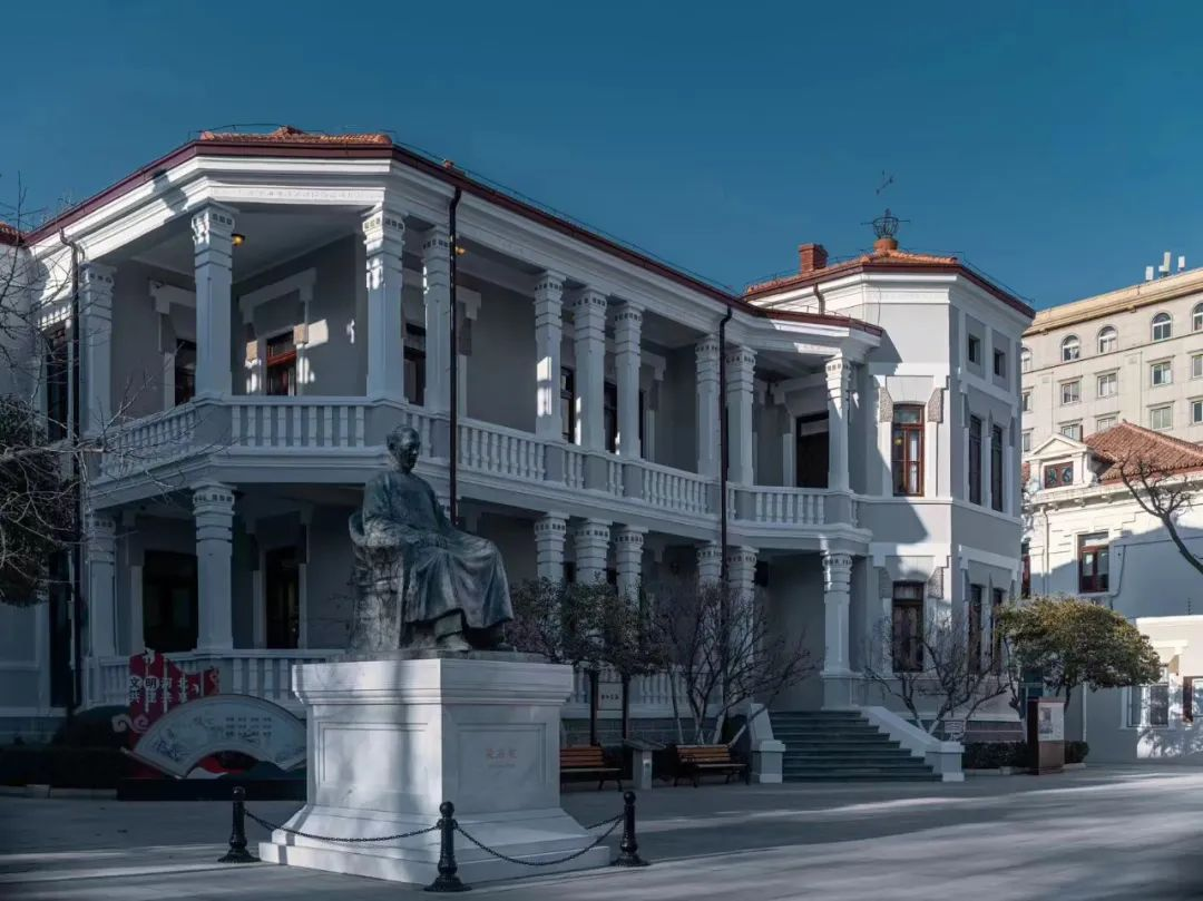梁啟超舊居由“舊居”、“飲冰室”書齋及附屬建筑組成,位于天津市河北區民族路12-16號,2021-2022年“舊居”修繕,2023年完成“飲冰室”書齋的修繕方案編制,待評審。舊居建于1914年,西式樓房,磚木結構,坡頂出檐,兩層建筑帶一層地下室,設有開敞柱廊。