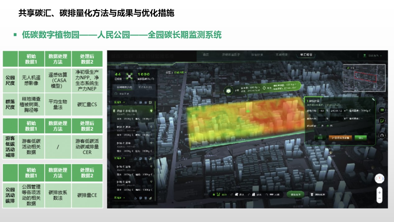 低碳數字植物園不僅建立了城市綠地低碳設計平臺,同時也為設計創新發展提供了有力支撐,其研究成果驅動了城市綠地“增匯”設計的發展,在公園更新項目及城市綠地規劃專項設計中均得到很好地運用。