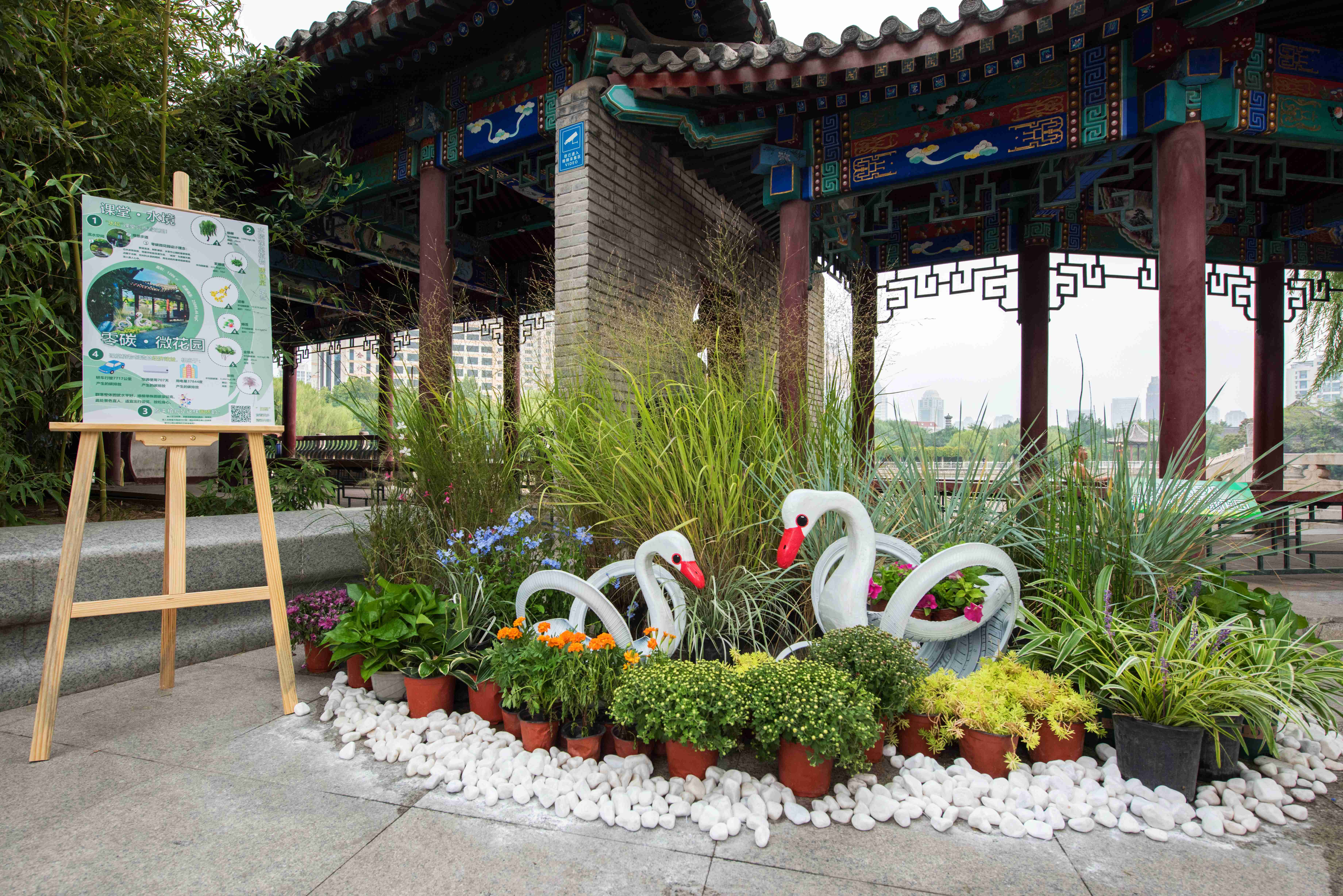 作為人民公園建園160周年活動的獻禮,由低碳數字植物園發起的首屆零碳微花園展通過對廢舊、閑置物品的回收利用和創意設計,體現低碳環保與景觀藝術的完美結合。王洪成教授團隊在展園設計和科研指導方面發揮了示范作用,這場低碳風景的呈現匯聚了團隊的智慧與創造力。展覽結束后,12個空間將繼續為市民提供展示低碳環保創意的平臺,成為微型低碳創意景觀作品的展示空間。