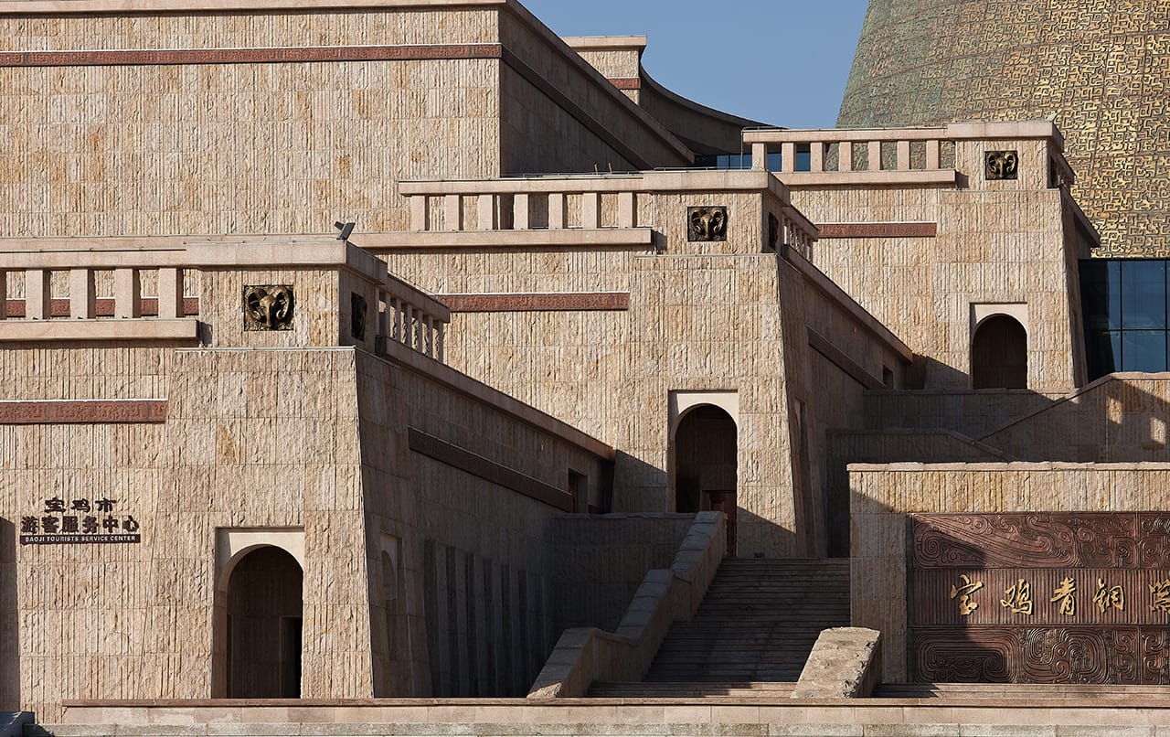 寶雞市青銅器博物院的設計以中華民族發源地的黃土高原文化,風土人情和地理環境生態為構思創意的出發點,從統領總體的環境大局入手,厚積薄發,大開大闔;同時,注重環境及地域文脈的理念,細部環節精雕細刻而整體大氣簡練。設計體現深厚文化底蘊和藝術美學內涵,建筑風格自然古樸,獨特,源于歷史與地域而推陳出新。