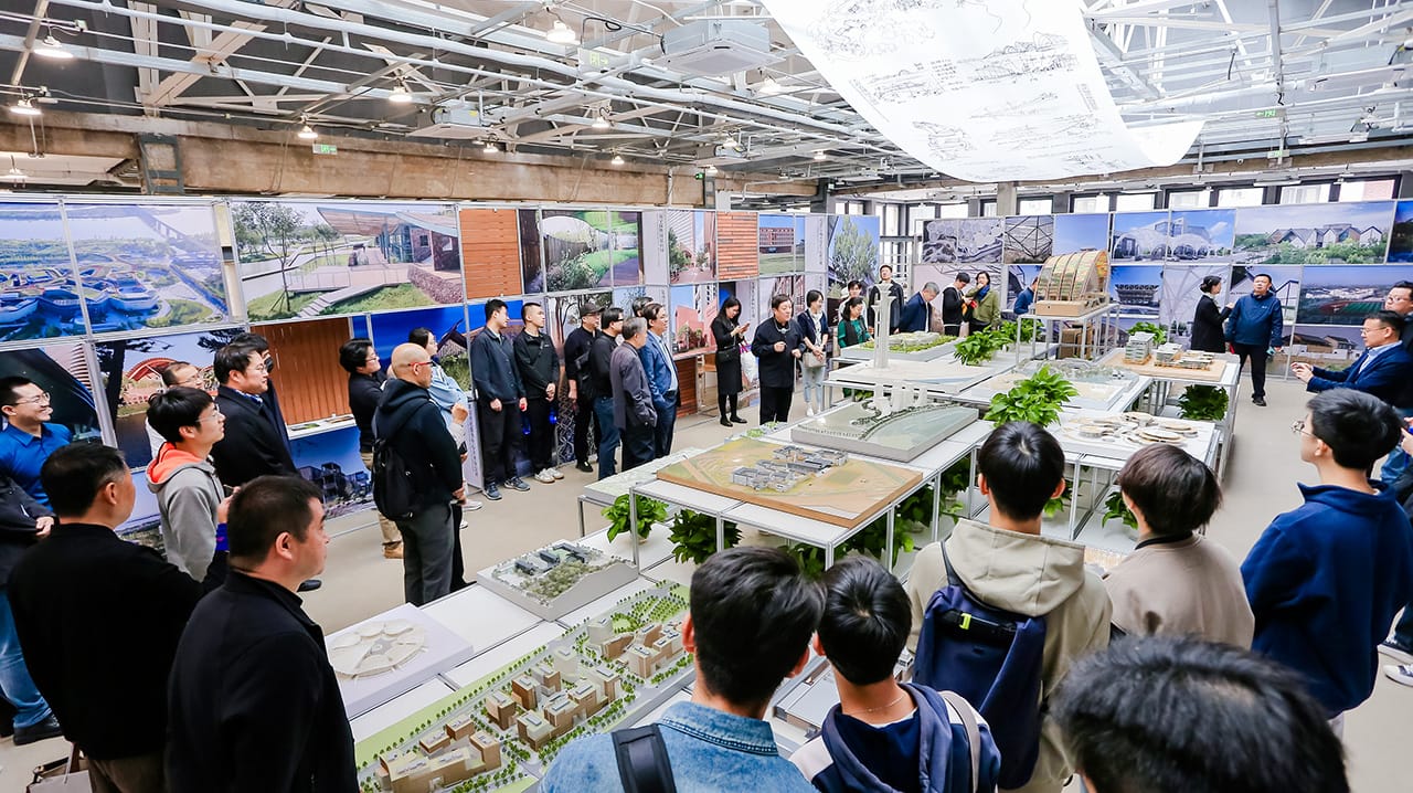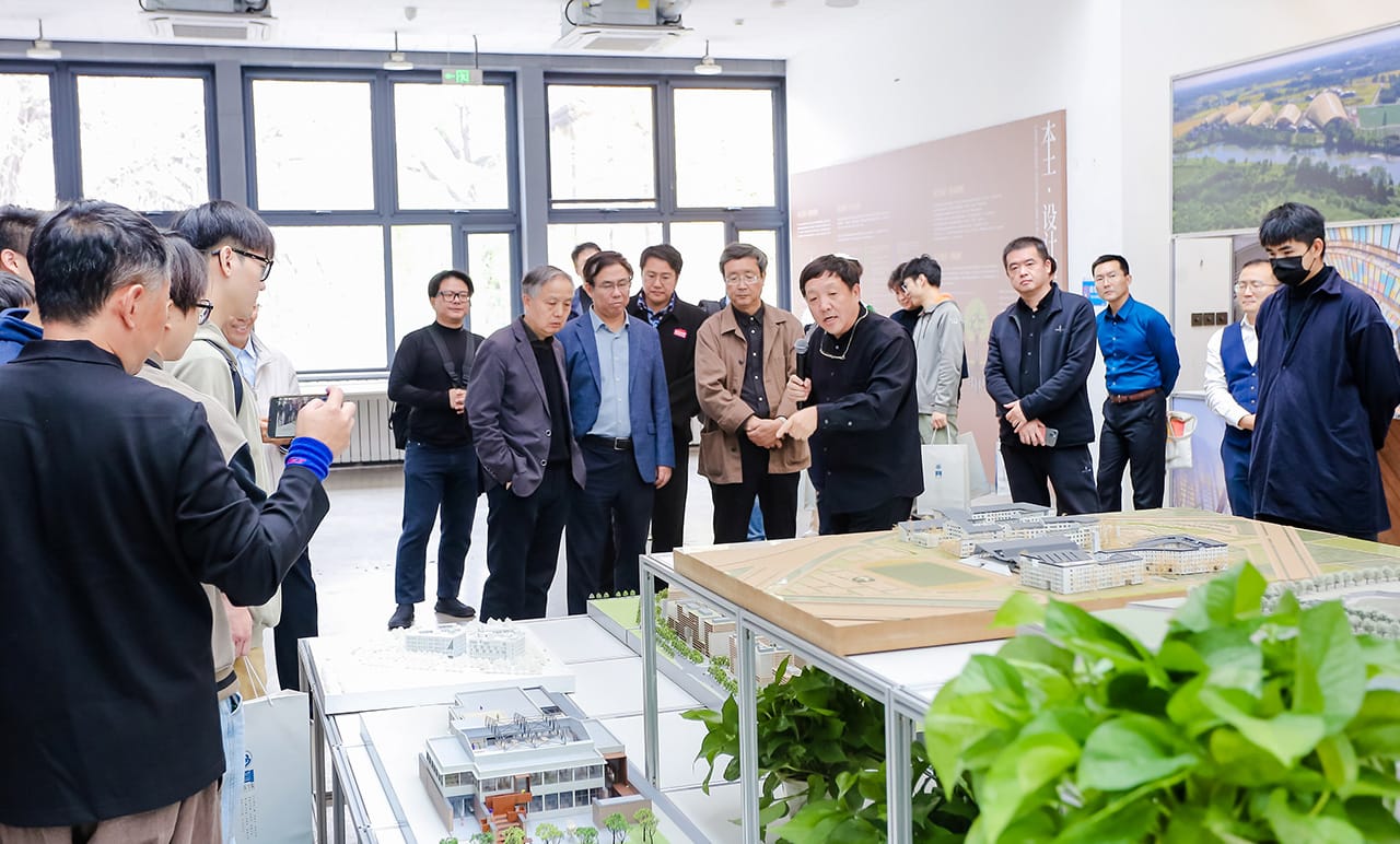 開幕式合影后,崔愷院士親自導(dǎo)覽,向與會(huì)嘉賓詳細(xì)介紹了展覽的作品,就各項(xiàng)目最新成果與設(shè)計(jì)理念進(jìn)行了交流。