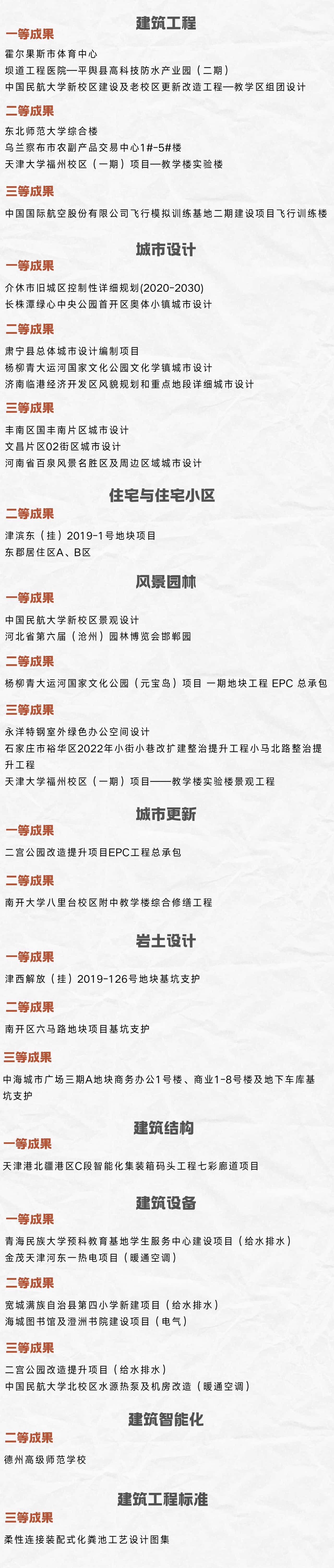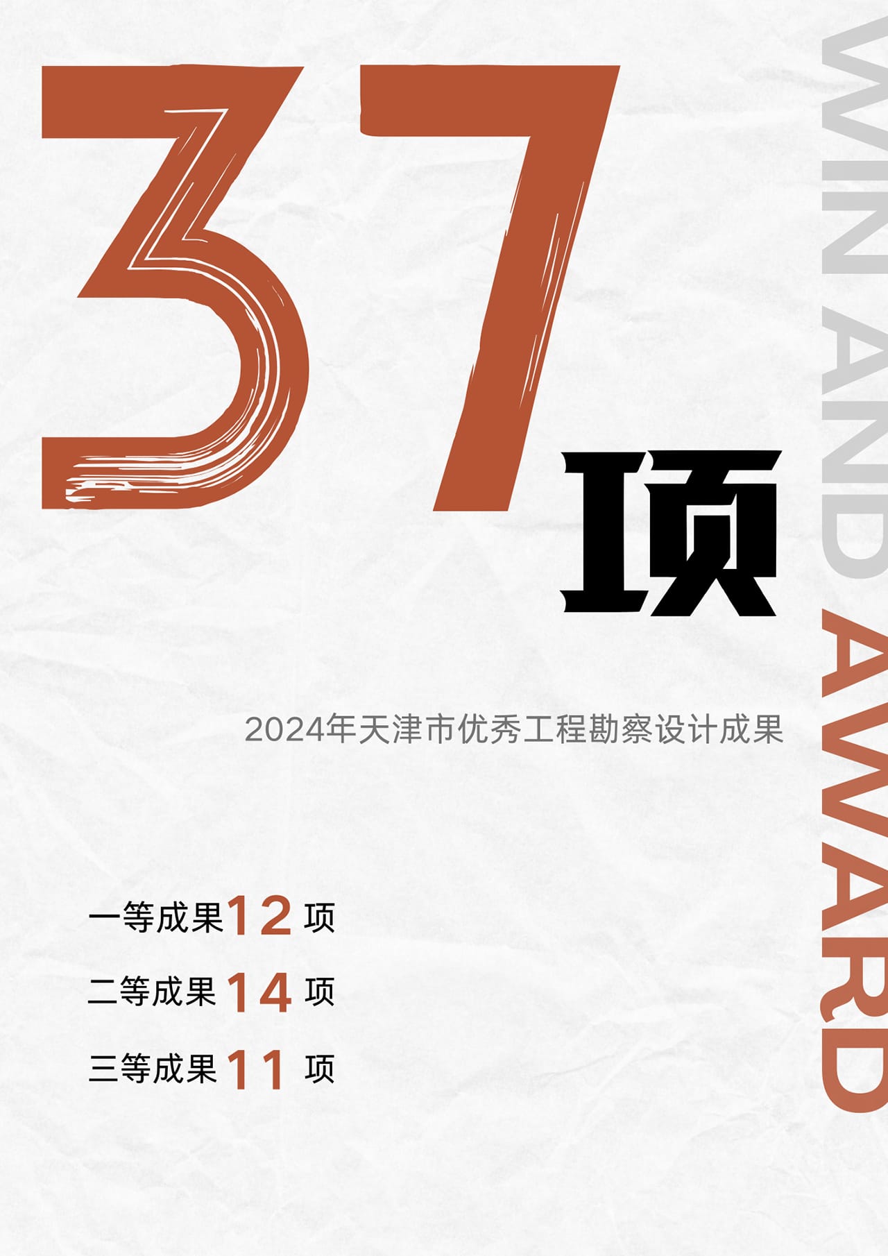 2024年天津市優秀工程勘察設計成果評價經過行業內 146 位專家的認真評審,近日對評價結果進行公布。天大設計總院共獲獎37項,其中一等成果12項、二等成果14項、三等成果11項。