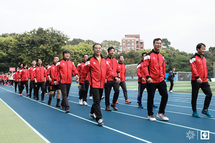 隨后,院長袁大昌、黨委書記程萬海與其他高校院領(lǐng)導(dǎo)一同來到球場中央,為本屆賽事開球。七所高校建筑設(shè)計(jì)院參賽隊(duì)伍、賽事組全體工作人員等共200余人一同參加。值得一提的是,本次賽事東道主華南理工大學(xué)的黨委副書記陶韶菁女士正是我校89屆內(nèi)燃機(jī)專業(yè)的校友。