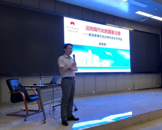 倪明勝教授通過魚尾獅的前世今生、星島崛起的奧秘所在、新加坡經(jīng)驗(yàn)到天津治理現(xiàn)代化三大板塊,結(jié)合建筑設(shè)計(jì)工作特點(diǎn),深入淺出,詳細(xì)闡述了新加坡的資源環(huán)境條件,風(fēng)土人情概況,建筑精品意識(shí),引領(lǐng)大家了解新加坡三任總理的治國(guó)理念與實(shí)踐方法、新加坡政治與治理的框架模式,新加坡的動(dòng)態(tài)治理經(jīng)驗(yàn)與天津治理借鑒以及從而引發(fā)的思考。倪明勝教授表示,雖然新加坡的發(fā)展模式和經(jīng)驗(yàn)對(duì)于我們有著無(wú)法完全復(fù)制的局限性,但其長(zhǎng)期以來(lái),“正視危機(jī)、務(wù)實(shí)求新、勇于求變、以民為本、砥礪奮進(jìn)”的精神非常值得我們學(xué)習(xí)和借鑒。