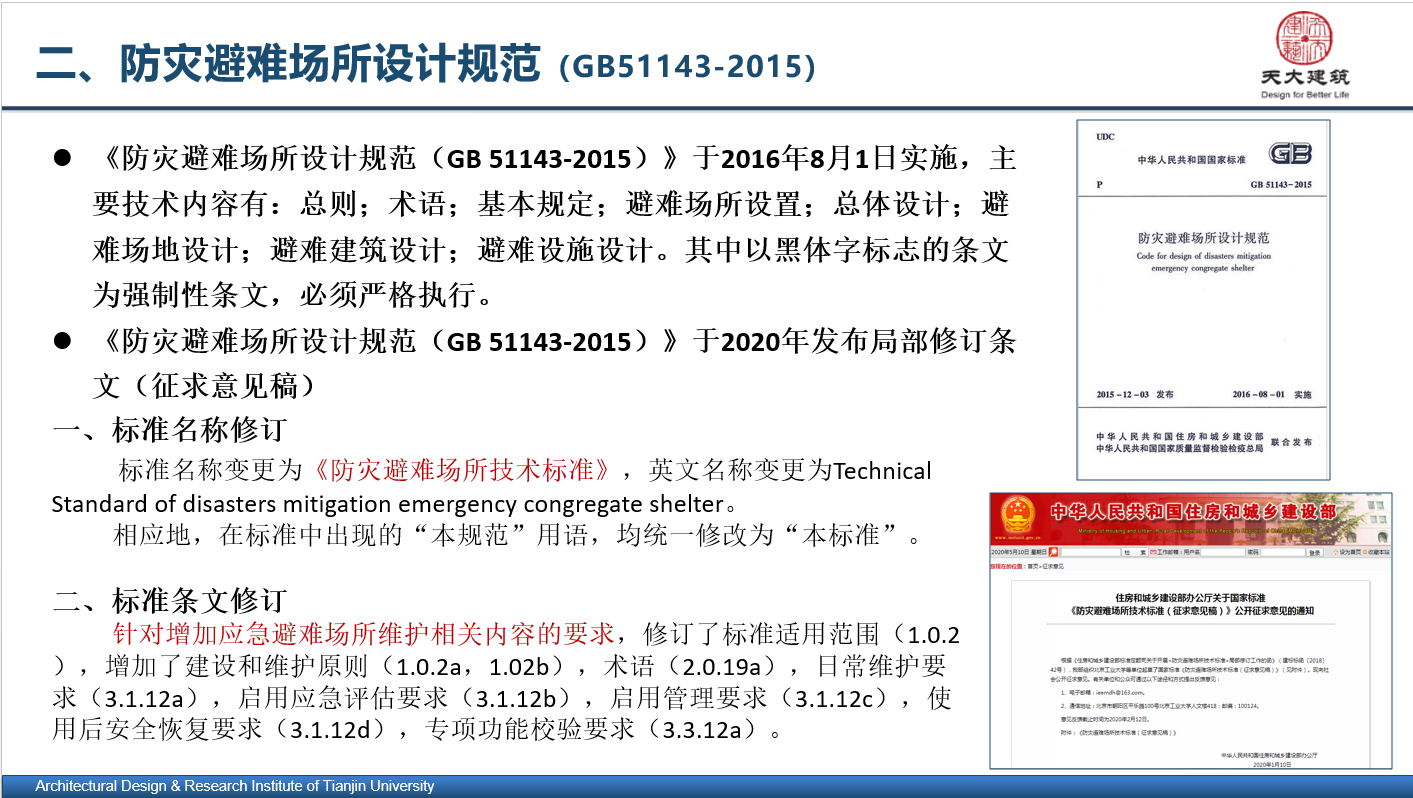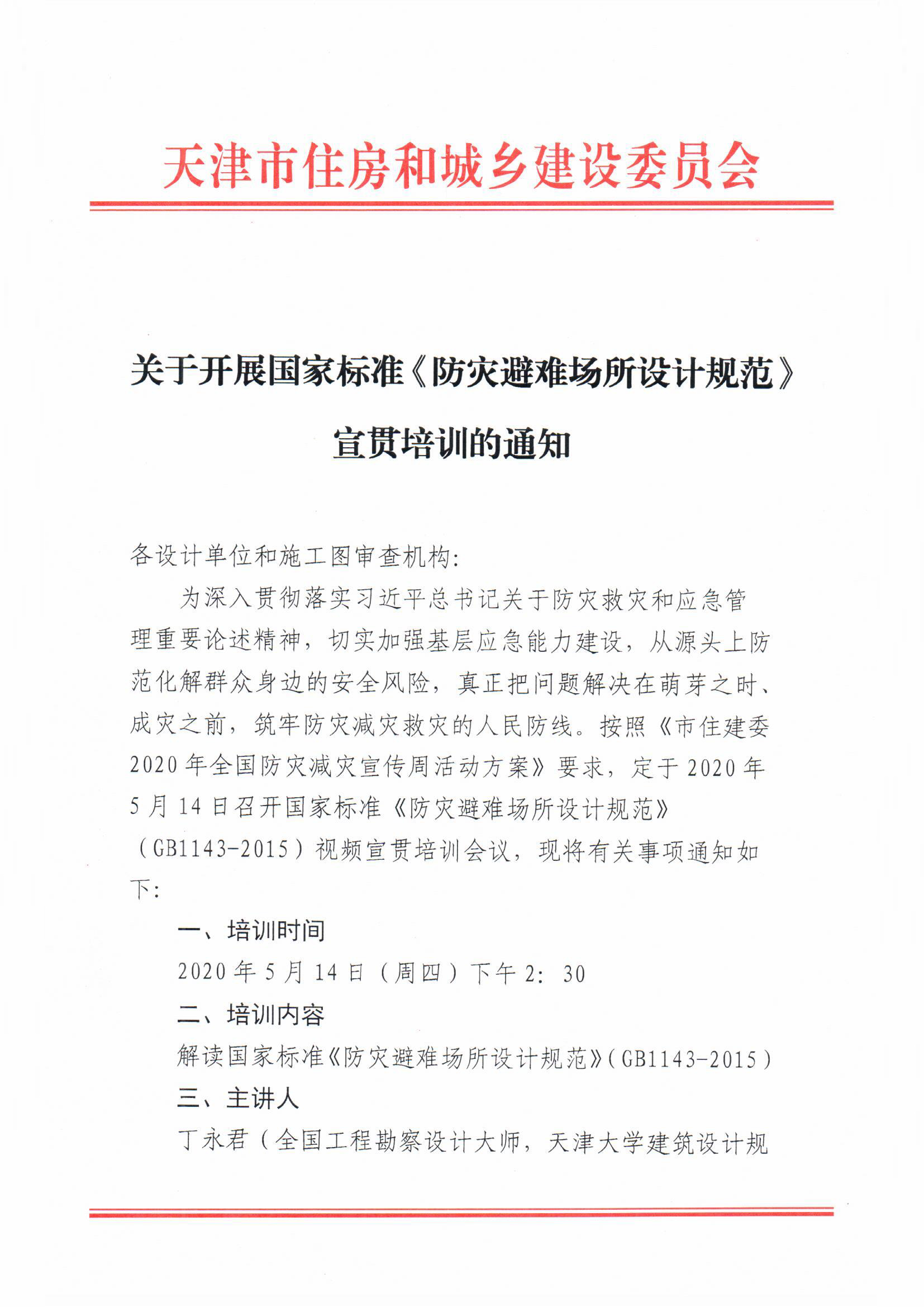 5·12汶川特大地震是新中國成立以來破壞性最強、波及范圍最廣、救災難度最大的地震災害,給國家和人民的生命財產帶來了巨大損失。2020年5月12日是我國第12個全國防災減災日。為深入貫徹落實習近平總書記關于防災救災和應急管理重要論述精神,提升基層應急能力,筑牢防災減災救災的人民防線,5月14日,天津市住建委舉辦了國家標準《防災避難場所設計規范》(GB1143-2015)宣貫培訓會。