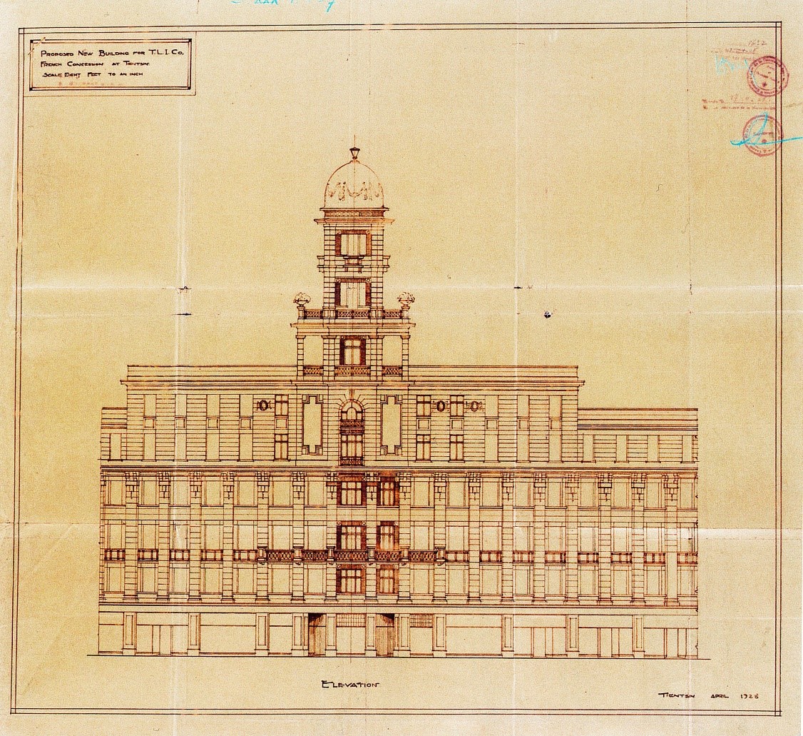 圖 天津中原公司立面原設計圖(來源:《天津近代建筑》)