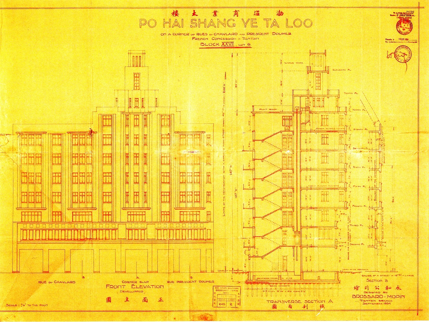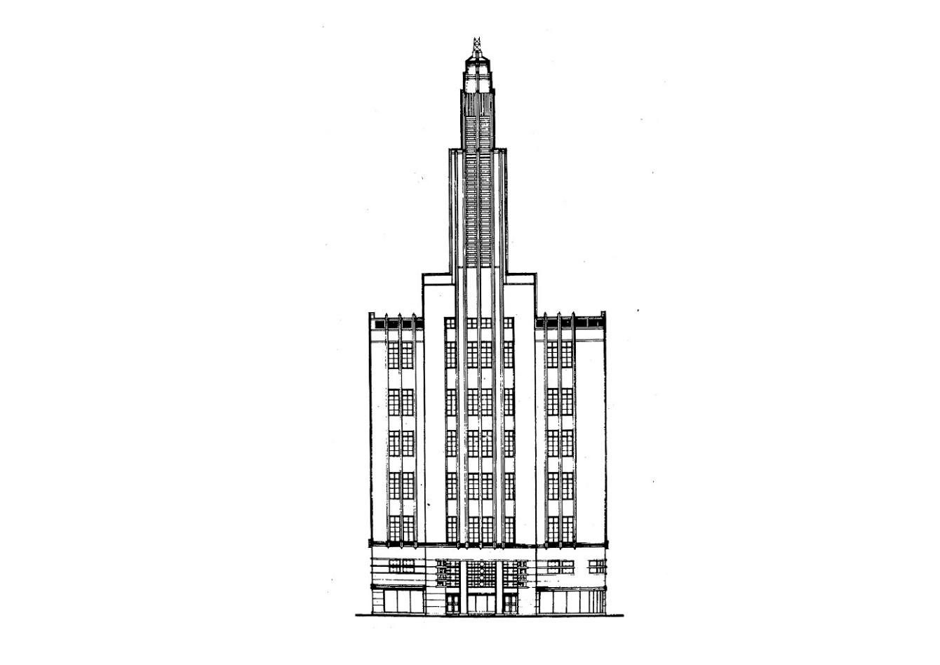 天津渤海大樓立面和剖面原設計圖(來源:《天津歷史風貌建筑總覽·公共建筑卷一》)