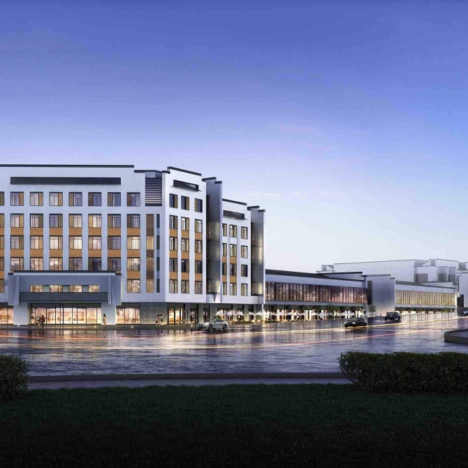 相較于其他冷鏈物流項(xiàng)目,本項(xiàng)目規(guī)模適中,業(yè)態(tài)種類全面。包含冷庫、常溫庫、食品加工、第三方物流、農(nóng)貿(mào)市場、配套辦公及公寓等多種功能。方案結(jié)合場地設(shè)計(jì),將商業(yè)功能和物流功能按東西兩側(cè)分別集中布置,功能相對集約。東西向的交通軸線聯(lián)系兩個(gè)功能區(qū),實(shí)現(xiàn)一種“前店后廠”的經(jīng)營模式。同時(shí)布局上充分考慮北側(cè)主干路的沿街展示效果,打造起伏的城市天際線,增強(qiáng)園區(qū)的標(biāo)識性。