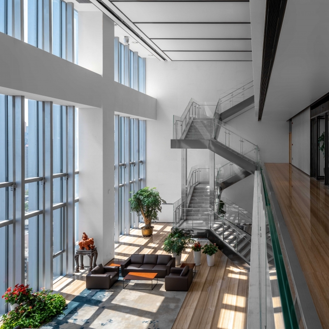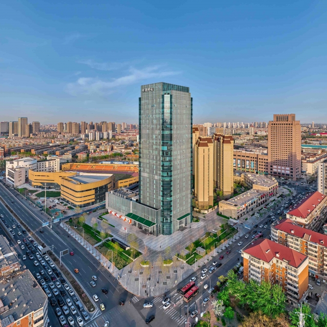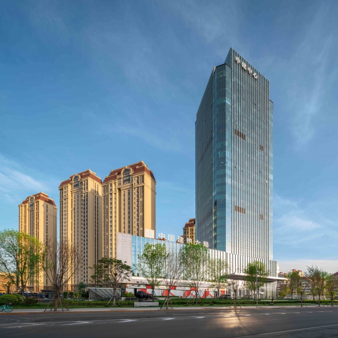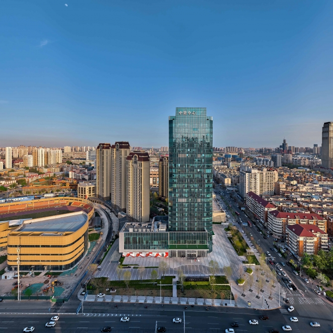 本子項為其中的寫字樓(高層辦公樓及其裙房),該項目地下二層,地上二十六層,地上總建筑面積:41730.00㎡,建筑高度:116.75m,超高層建筑。 結合基地條件和周邊環境,最大限度提高了用地的使用效率。項目為多邊形用地,寫字樓沿用地西北側快速路布置,既與城市界面形成便捷聯系,又與住宅部分相對獨立,互不干擾。