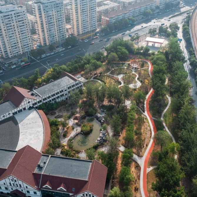 二宮公園承載著幾代人的歷史記憶,設計延續場地風貌與文脈,最大程度尊重場地現狀,植入全新功能,合理排布路網、廣場、亭廊等景觀元素,使場地煥然一新。