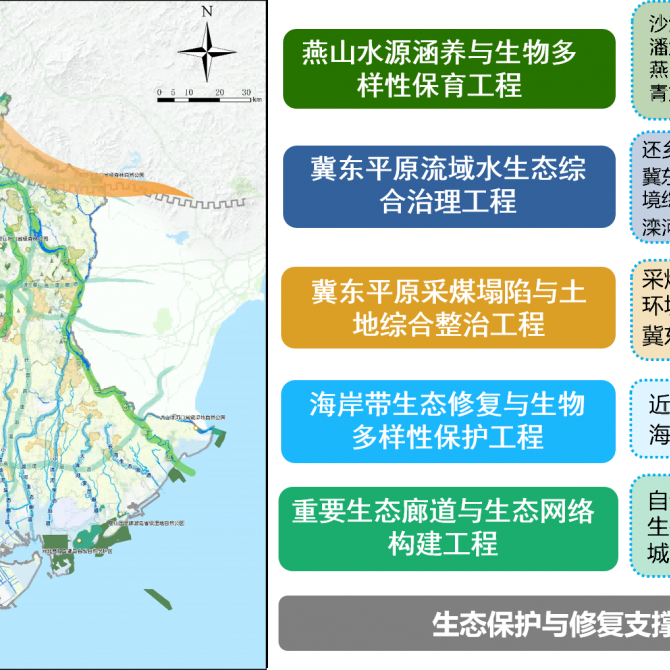 唐山市自然資源豐富,重化產(chǎn)業(yè)基礎(chǔ)雄厚,是京津冀協(xié)同發(fā)展的重要支撐。項目立足唐山的現(xiàn)實生態(tài)問題和城市功能定位,以統(tǒng)籌山水林田湖草一體化保護修復為主線,以生態(tài)系統(tǒng)服務和人類福祉之間的互饋關(guān)系為切入點,基于問題、瞄準目標、面向?qū)嵤w謀劃唐山市生態(tài)修復的總體布局、重點任務與重大工程,切實推進規(guī)劃落實落地。形成了整體保護、系統(tǒng)修復和綜合治理的市級國土空間生態(tài)修復規(guī)劃研究范式。