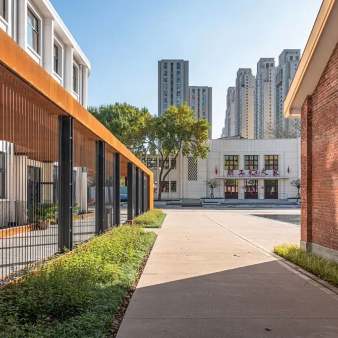 首批呈現(xiàn)的區(qū)域以幼兒園、職工之家為底景,辦公樓與蘇聯(lián)專家樓和蘇聯(lián)專家樓會(huì)議室相互圍合構(gòu)建前廣場(chǎng)歷史空間氛圍,復(fù)原廠區(qū)大院原真感。實(shí)現(xiàn)“老津一、新活力”的規(guī)劃愿景,展現(xiàn)項(xiàng)目的自然韻律之美、工業(yè)建筑之美。