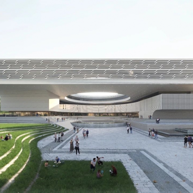 一個在山海間巍巍升起、承載著山海文化和校園精神的“山海水環”成為校園與山海對話的第一印象空間,博物館群宛若莊重、濃縮的文化衛城,守護文化寶藏、彰顯開放胸襟、體現青島魅力。