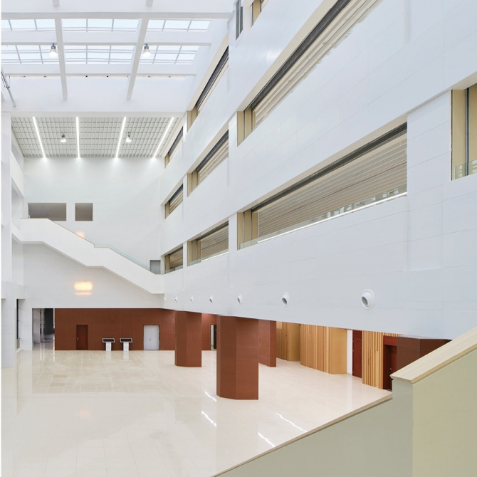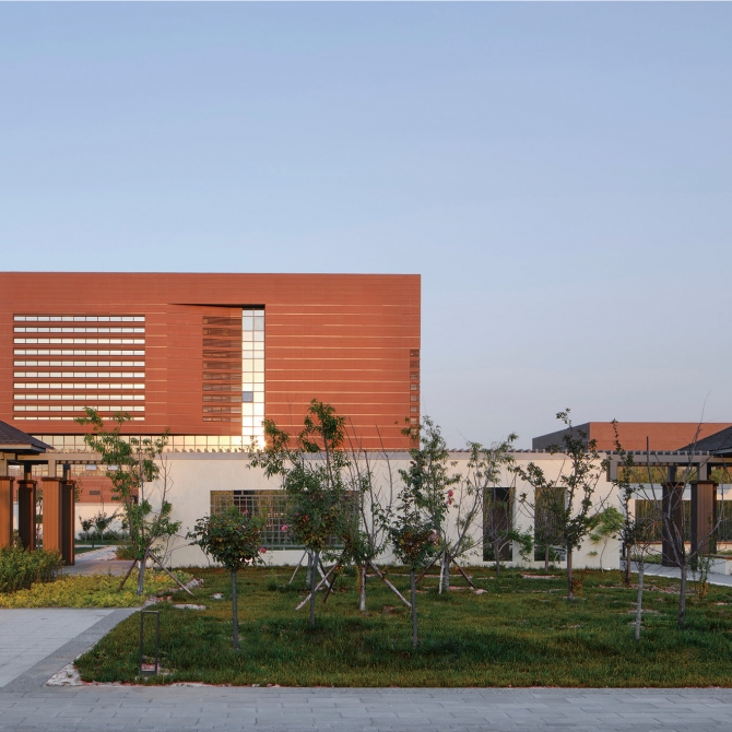 德州高級師范學校是由平原師范、德州幼兒師范臨邑師范三所歷史悠久的師范學校合并而成,特色鮮明底蘊深厚。各功能建筑結合不同的使用特點,建筑表情內斂而克制,在陽光的映襯下,呈現出優雅的光影變化。