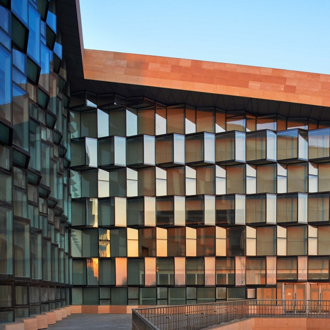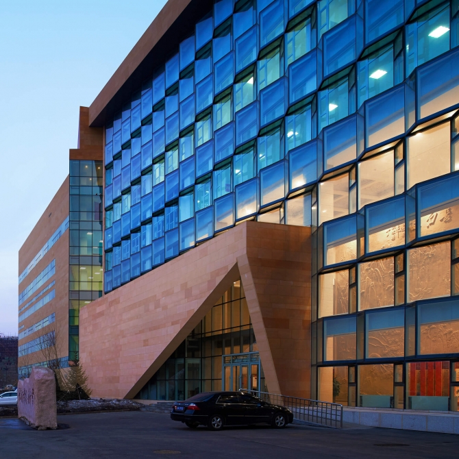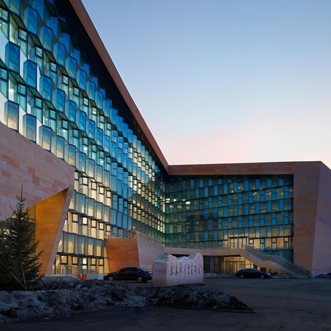 長春連續多年榮膺全國最具幸福感的城市,“幸福”是長春市最具特色的標簽,群眾藝術館也應該是讓市民感受到幸福的場所。整個設計猶如一塊巨大的石頭從中切開,露出璀璨奪目的幸福寶藏。建筑既符合東北人沉穩厚重的審美,又符合群眾藝術館幸福歡快的性格。