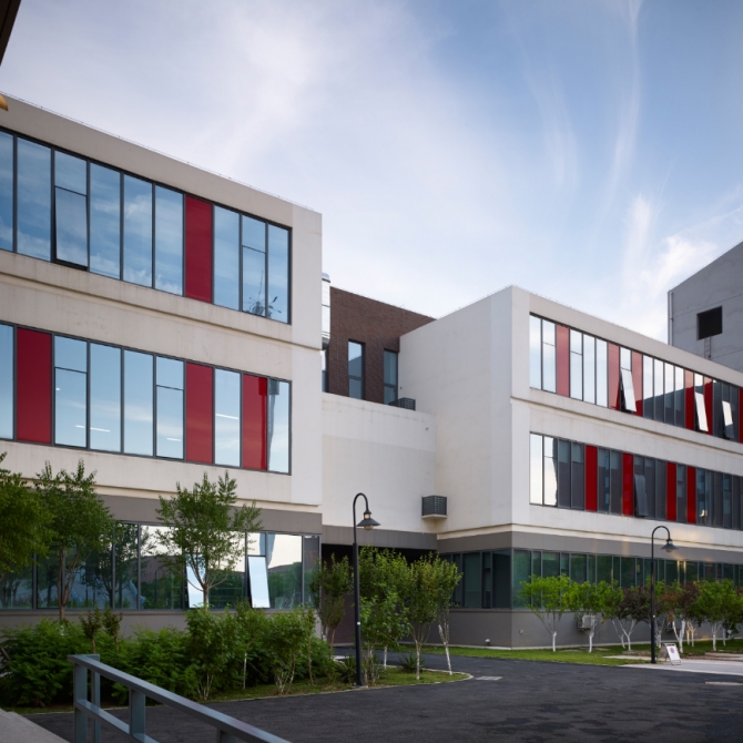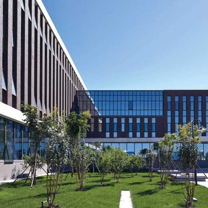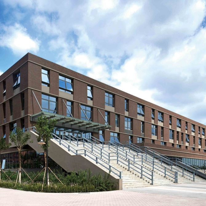 項(xiàng)目從整體規(guī)劃、單體造型及色彩設(shè)計(jì)上凸顯了新校區(qū)機(jī)械教學(xué)組團(tuán)作為工科學(xué)院的嚴(yán)謹(jǐn)高效的氣質(zhì),作為整個(gè)校園對(duì)外的形象展示,提高了國(guó)家重點(diǎn)實(shí)驗(yàn)室的展示度。 在空間設(shè)計(jì)上充分考慮實(shí)驗(yàn)及教學(xué)、 辦公等功能的有機(jī)結(jié)合,實(shí)現(xiàn)空間利用率的最大化,滿足師生使用的多種需求。為學(xué)科發(fā)展提供最堅(jiān)實(shí)的基礎(chǔ)。 考慮熱動(dòng)大樓油庫(kù)使用的安全性,將熱動(dòng)大樓規(guī)劃于整個(gè)機(jī)械學(xué)院組團(tuán)的東南角,臨近高速路立交橋的交叉口,既降低了對(duì)校園內(nèi)部環(huán)境的危險(xiǎn)性影響。本項(xiàng)目利用多種技術(shù)手段,實(shí)現(xiàn)節(jié)能環(huán)保的需求。具有顯著的節(jié)能、節(jié)水和提高資源利用率的效果,有效解決關(guān)系師生健康的環(huán)境問題。
