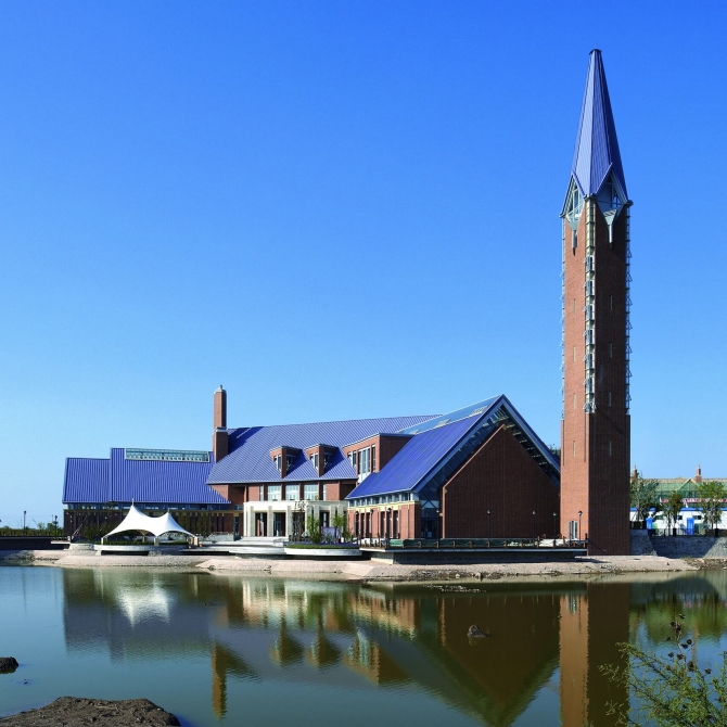 建筑充分融入自然環(huán)境,內(nèi)部空間豐富,是天津華僑城住區(qū)內(nèi)及其在東麗湖岸線上美麗的風(fēng)景和標(biāo)致性建筑,演繹了華僑城住區(qū)獨(dú)有的精致生活。