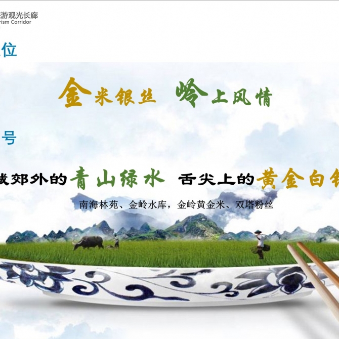 金嶺鎮生態旅游觀光長廊按照主題定位,結合各村莊資源稟賦,分為工業體驗旅游組團、休閑養生旅游組團、生態觀光旅游組團、鄉村度假旅游組團,四個旅游組團。