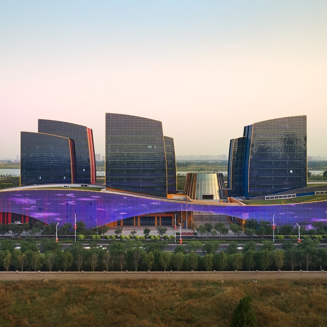 建筑憑借浪漫詩意的構(gòu)思,呼應(yīng)滹沱河的天然美景,以“銀帆掠影”的靈感營造出活躍的城市面貌,實現(xiàn)自然、城市、建筑、人群的和諧統(tǒng)一。