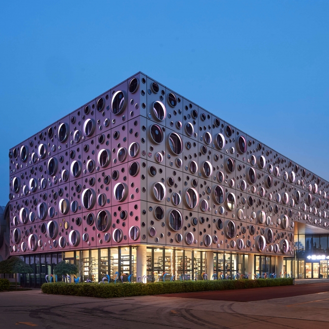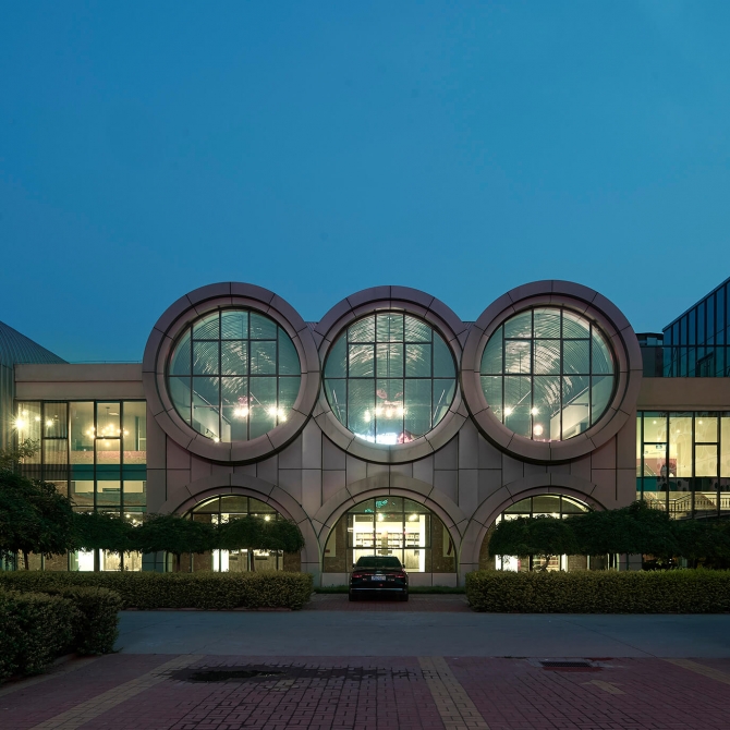“新”—— 以生產企業“玻璃燈工”的加工原料玻璃管材為造型設計的出發點,提取圓形母體作為建筑表皮和建筑造型的元素,使建筑具有標志性,成為當地新地標,起到展示公司文化,改善城市新區景觀的作用。