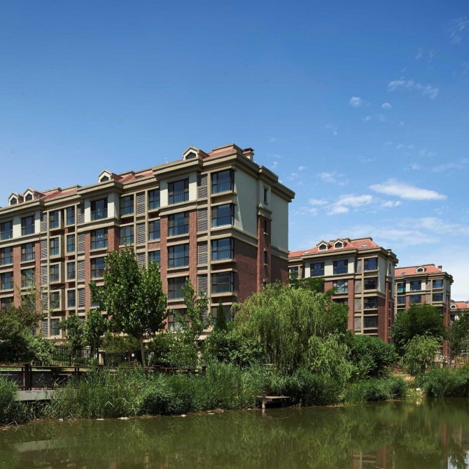 本項目位于天津武清區,規劃總用地面積12.75公頃,項目周邊規劃為三面水系,定位于高檔住宅小區。在總平面規劃上將高層及多層住宅分為兩個相對獨立的分區,互不干擾,形成南低北高的整體格局。這樣的布局形成了較為舒適的空間過渡以及柔和優美的天際線變化,也增加了社區居住的舒適度。