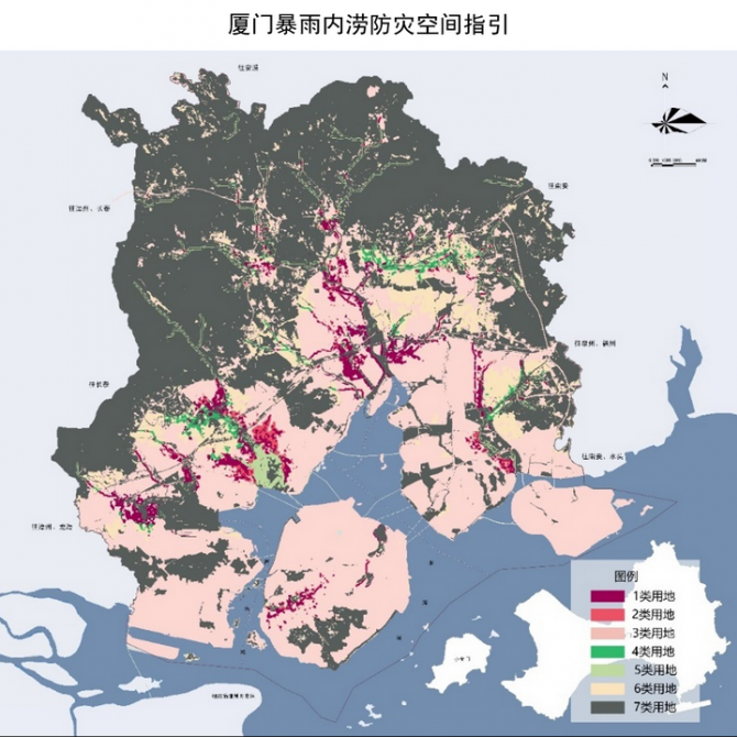 規劃針對快速城鎮化背景下濱海城市應對極端氣候災害的局限與不足,同時圍繞傳統防災規劃中的主觀性過強、實用性不足、系統性較差等問題,立足于數字化測繪、空間信息、物理環境模擬等高新技術手段,系統地建構濱海城市極端氣候災害評估及生態安全格局網絡設計方法,并針對廈門市提出具體的生態安全格局網絡設計方案和防災規劃措施。