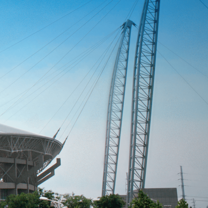 主體育場彎月狀屋頂位于中心,其它場館望“月”而聚。圍繞主體育場的6米高的階梯狀綠化帶是規劃用地的綠化中心,也是整個區域中心的“綠肺”。