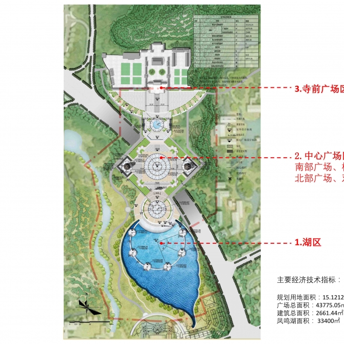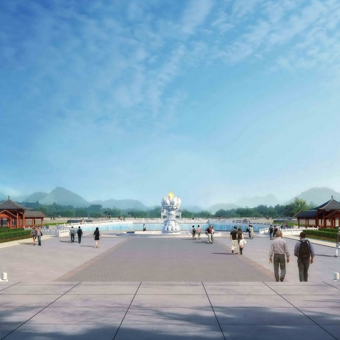 中心廣場區分為南廣場、核心廣場和北廣場,以九品蓮花為設計意向,對菩提生蓮進行圖形化展示。