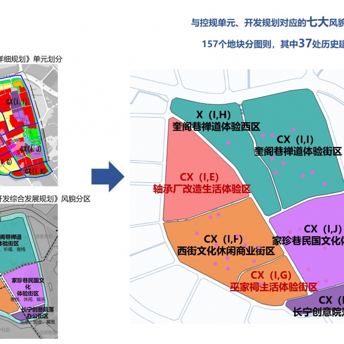 然后,“一控三導”的控制導則,對接和執行控制性詳細規劃的強制性內容,從建筑設計導則、空間環境導則、功能設施導則,對建筑空間風貌、設施配置、空間環境等方面進行具體引導,最終形成對應各部門的實施導則和地塊圖則,從而指導下一步的修建性詳細規劃和單體建筑設計等項目的實施。