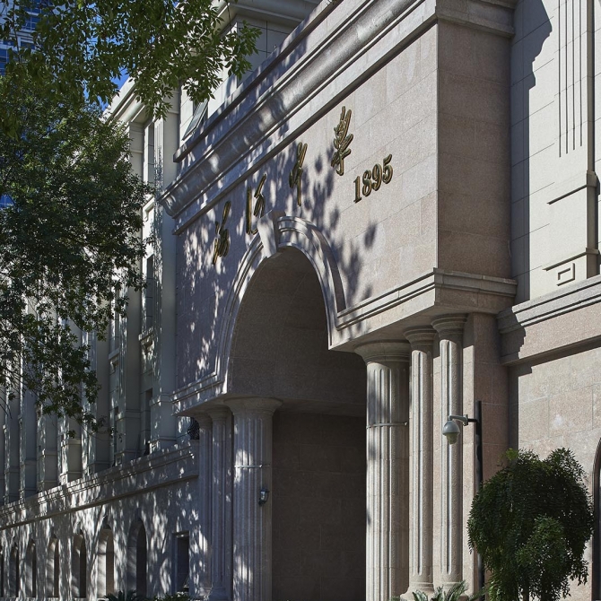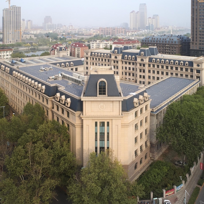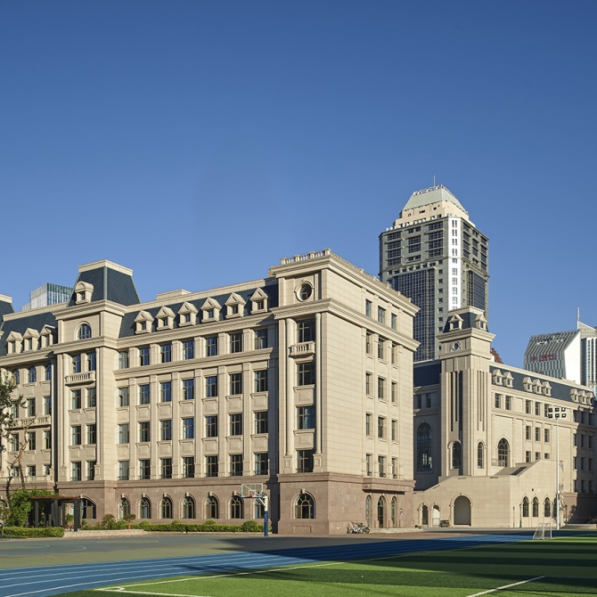 天津市海河中學(xué)成立于1895年,是一所具有百年歷史的傳統(tǒng)學(xué)校。由于地處城市商務(wù)核心區(qū),原有校園用地極為緊張,硬件條件已經(jīng)達(dá)不到高中示范校的基本標(biāo)準(zhǔn)。為解決這一難題,教育部門協(xié)調(diào)周邊單位進(jìn)行異地搬遷,增加校園可用地面積,本項(xiàng)目就是對(duì)于原校園的改擴(kuò)建。
