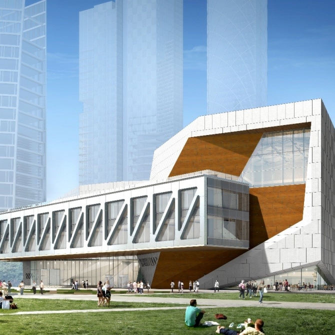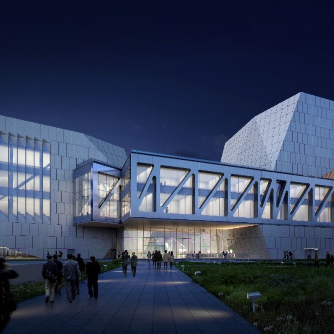 項(xiàng)目空間高大,設(shè)有700座劇場(chǎng)、黑盒子劇場(chǎng)各一個(gè),訓(xùn)練大廳以及一個(gè)頂部為玻璃的四季中廳。地下為框架結(jié)構(gòu),地上鋼為結(jié)構(gòu),外圍為全幕墻。