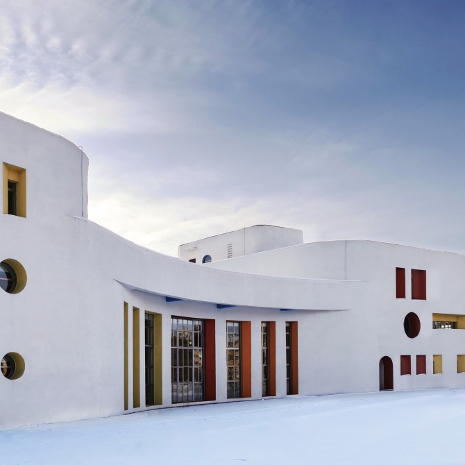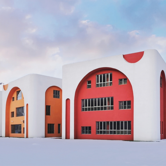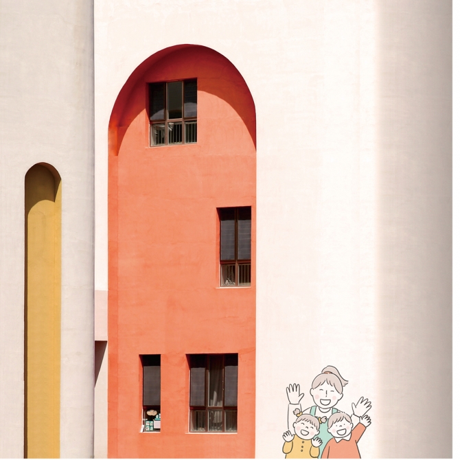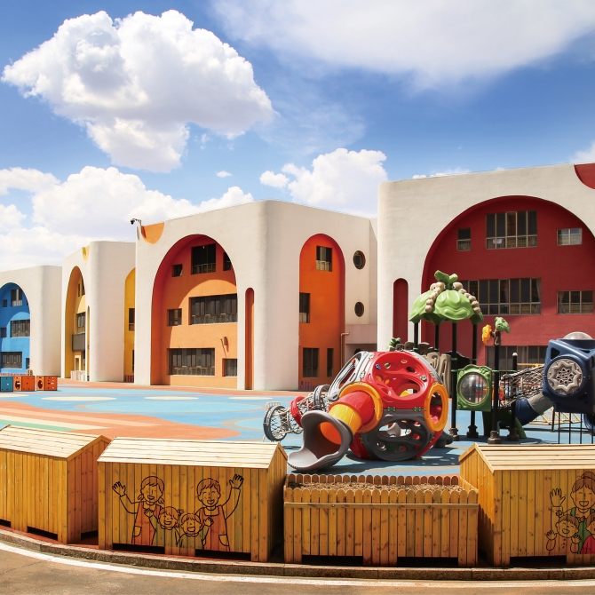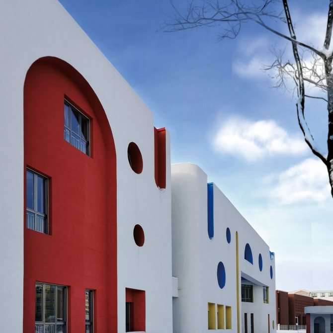 建筑立面采用白色作為底色,根據(jù)立面造型,采用生動活潑的顏色作為點綴,給孩子們提供一個多彩的童年世界。