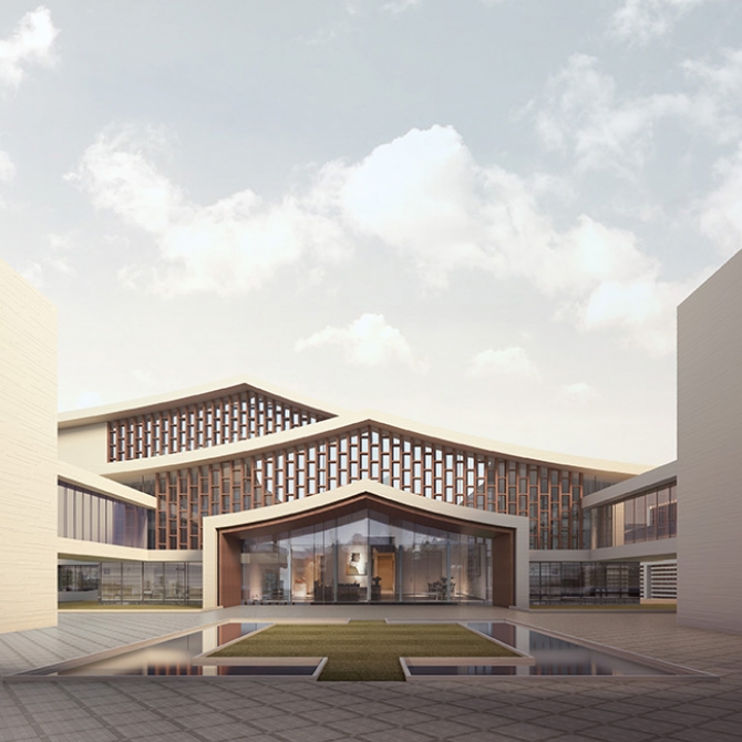 方案源自于老年人對于中式傳統(tǒng)空間氛圍的追溯和期待,以此為出發(fā)點,結(jié)合基地地形變化,創(chuàng)造出適合于老年人活動的錯落有致的建筑空間以及曲徑通幽的園林小徑。對比現(xiàn)代風格的第一人民醫(yī)院新院區(qū),方案打造的是一座適合于老年人休養(yǎng)生息的公園式建筑群落。建筑以現(xiàn)代的材料和工藝做法,試圖創(chuàng)造出輕盈、富有變化且充滿現(xiàn)代感的中式立面效果。