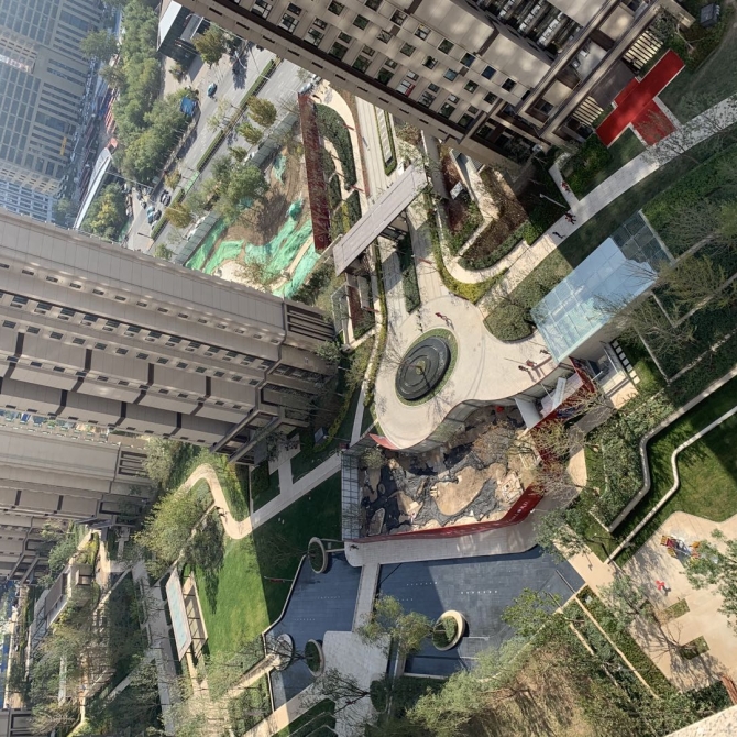 社區(qū)組團綠地布置在兩排高層之間,宅旁綠地布置圍繞整個社區(qū)。小學(xué)、幼兒園及商業(yè)金融業(yè)附屬綠地基本滿足規(guī)劃要求。
