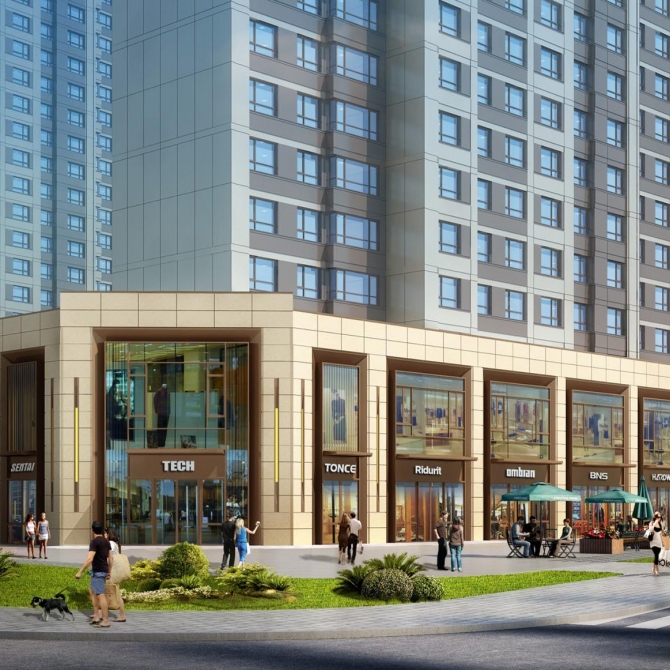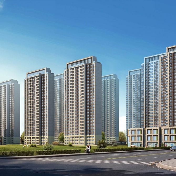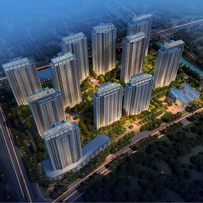 項目以點式高層住宅建筑為主,以26-32層住宅組成。沿南側規劃道路自西向東為經營性配套公建、3棟26層住宅建筑及幼兒園組成。沿北側現狀道路自西向東為非經營性配套公建、2棟32層住宅建筑及1棟29層住宅建筑組成。東西兩側沿線分別為28層和29層住宅建筑,地塊中間有2棟30層住宅建筑。空間規劃結合項目定位與區域整體建筑氛圍的特點,住宅布局靈活有序。