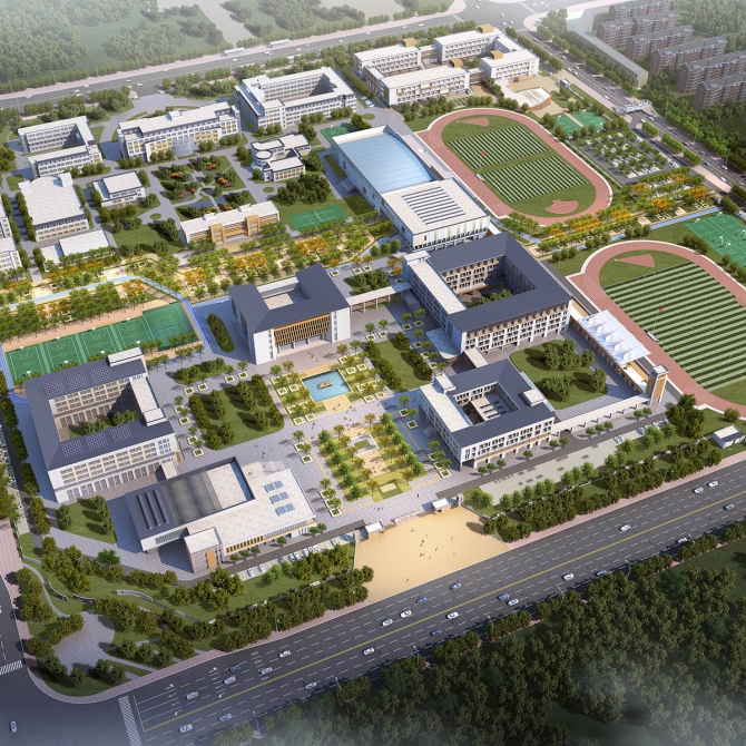 遷安市教育園區的設計主旨是打造有著現代化的設施、現代化的教學方式、現代化的教學空間,同時又具有強烈的書院風骨,人文精神,體現文化傳承的現代書院式園區。園區以綠色、生態、共享為設計原則,各種設施實現園區共享,校市共享。