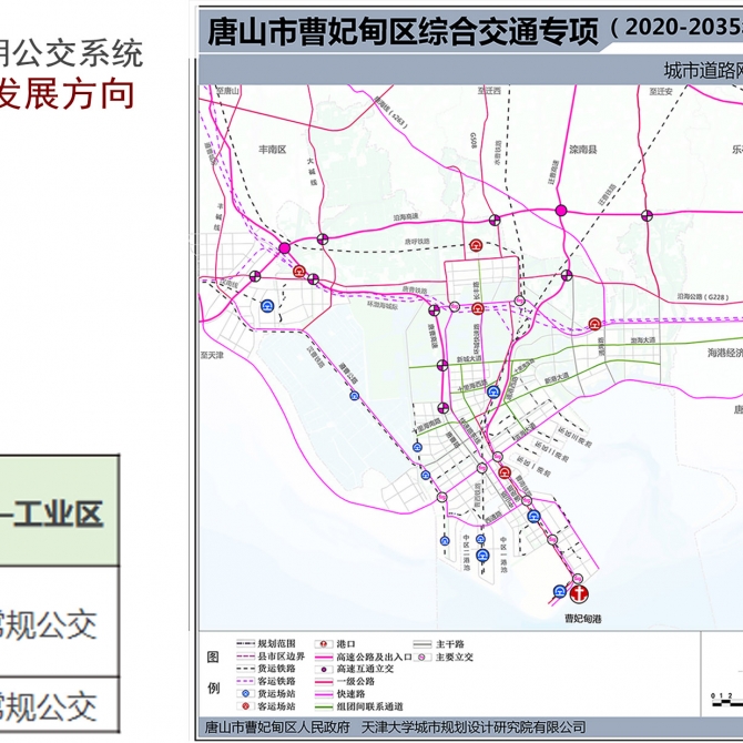 本項目的發展目標是對外打造北方綜合交通樞紐,環渤海地區大型綜合性港口和物流基地,構筑區域一體化、開放、便捷、高效的綜合交通運輸體系,形成以曹妃甸港、城際鐵路、貨運鐵路及干線公路為骨干的多方式有機銜接、客貨兼備的高質量綜合立體交通系統。