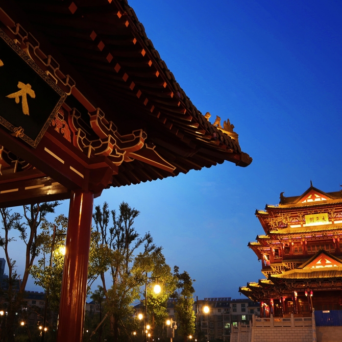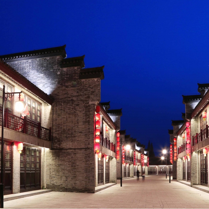 現狀基地內有連接新襄河兩岸的太平橋,太平井和老街上一處將軍故居等重要歷史遺跡。整個古城建筑物色溫的規劃中,為了創造出具歷史傳承、民俗特色、商旅元素的照明氛圍,并使夜間建筑色溫契合建筑所在區域的環境要求,制定以下分區色溫來提升項目形象的同時,起到促進商業旅游的發展;