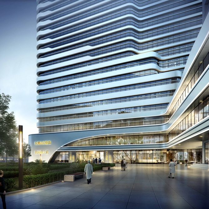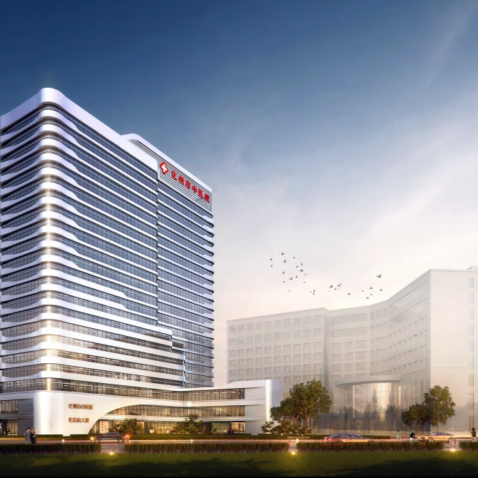 現狀院區出入口不足,交通體系不完善,用地局促且形狀不規則,城市界面不佳,原有建筑造型呆板、城市形象較差。如何規劃布局、集約用地、梳理交通成為項目的一大課題。新建傳染病大樓因自身的特殊類型,綜合性強,流線復雜,如何處理新舊建筑的關系、平戰結合、預留發展成為又一設計難點。