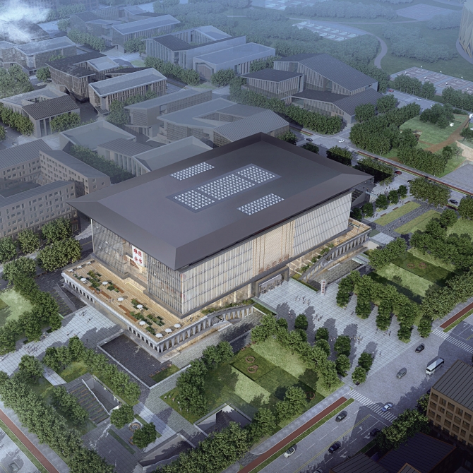 作為啟動區標志性建筑,圖書館的設計目標強調圖書館在整個大學園片區的的標志性和核心地位,大尺度的建筑體量主導廣場空間,成為校園軸線重要節點。